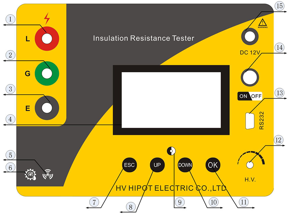 ● Automatically discharge high voltage after measurement is completed, the discharge time is no more than 30 seconds.
