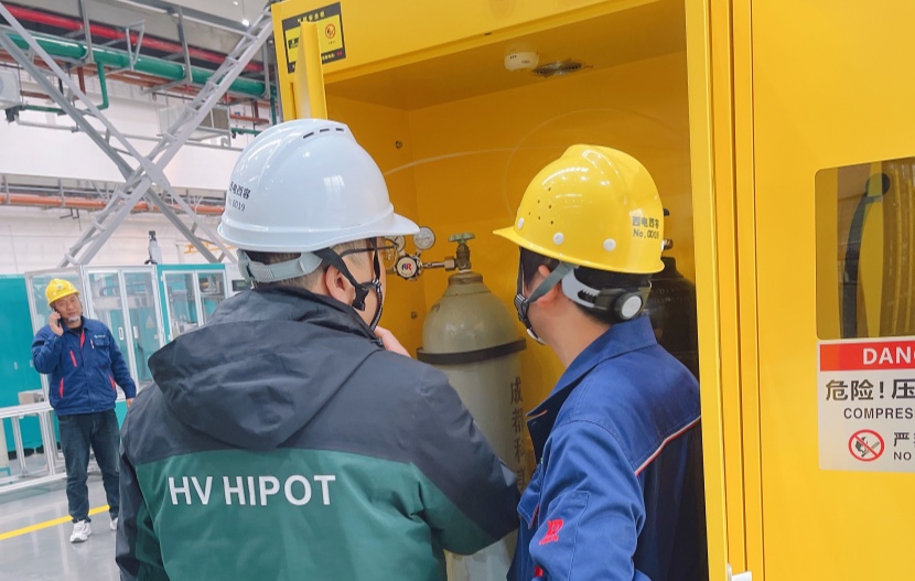 Recently, HV HIPOT Electric Co., Ltd. (hereinafter referred to as “HV HIPOT”) received a purchase order from Xi’an Complete Set Factory, requesting it to provide GDQH-601SF6 gas recharging and recovery equipment. To ensure the stable and efficient operation of the equipment, the professional engineering team of HV HIPOT traveled to the Xi’an Complete Set Factory site to conduct equipment debugging, installation, and operation training services. With their superb skills and considerate services, they won high recognition from the customer and continued to write a new chapter of win-win cooperation between the two parties.